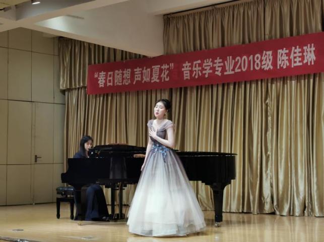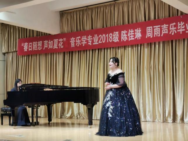 本次音乐会分为两场举行,第一场由陈佳琳、周雨两位同学演唱,音乐会以“春日随想,声如夏花”为主题,两位同学一共演唱了12首声乐作品,曲目范围涵盖艺术歌曲、歌剧咏叹调等。