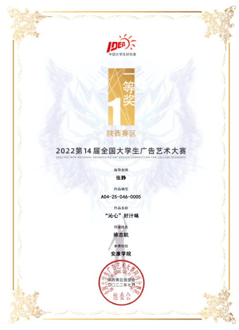 近日,第十四届全国大学生广告艺术大赛陕西赛区比赛结果公布,jdb电子jdb电子中国官方网站学生再获佳绩,获得一等奖1项、二等奖5项、三等奖5项。