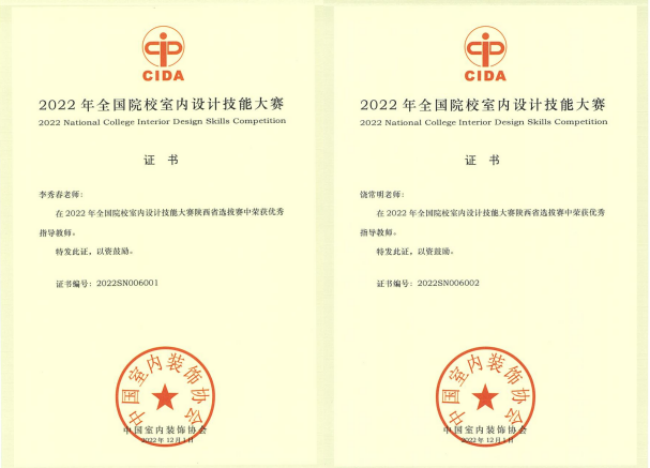 近日,2022年全国院校室内设计技能大赛(陕西赛区)比赛结果揭晓。由jdb电子青年教师饶常明、李秀春指导的2020级视觉传达设计专业唐子君、张荟茹同学荣获本科组团体“一等奖”,并受邀参加国赛;2019级视觉传达设计专业张萌梦、郑森栋同学荣获本科组团体“三等奖”。饶常明、李秀春获本次大赛“优秀指导教师”。