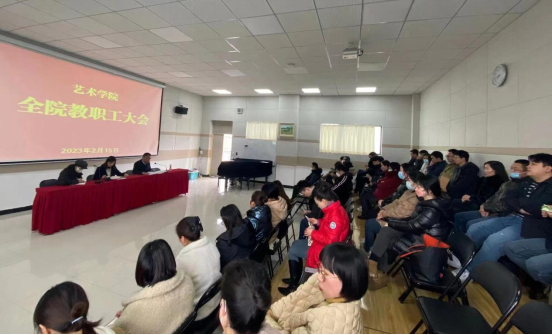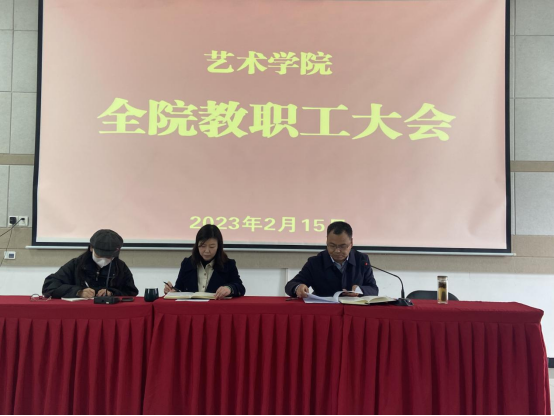 2月15日下午,jdb电子中国官方网站在艺术楼2415教室召开全体教职工大会,传达学习学校2023年度工作会议精神。会议由副院长鲍丽主持。
