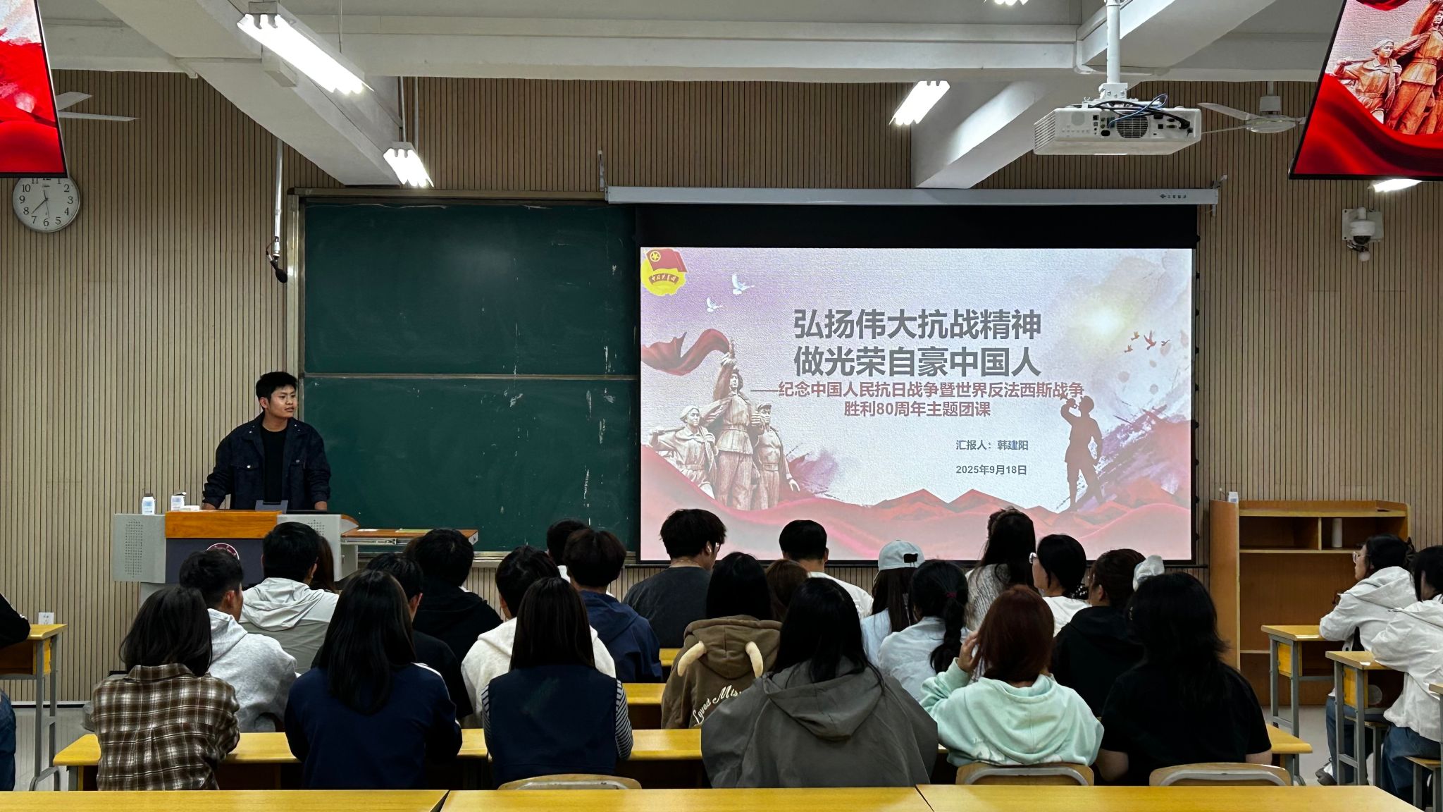 为了深入学习习近平总书记在纪念中国人民抗日战争暨世界反法西斯战争胜利80周年大会上的重要讲话精神,深化学生对伟大抗战精神的理解与认同,充分发挥思政课立德树人主渠道作用,jdb电子中国官方网站团总支于9月18日在学院多媒体教室及学生宿舍等场所,开展“弘扬伟大抗战精神做光荣自豪中国人——纪念中国人民抗日战争暨世界反法西斯战争胜利80周年”思政大课学习活动。