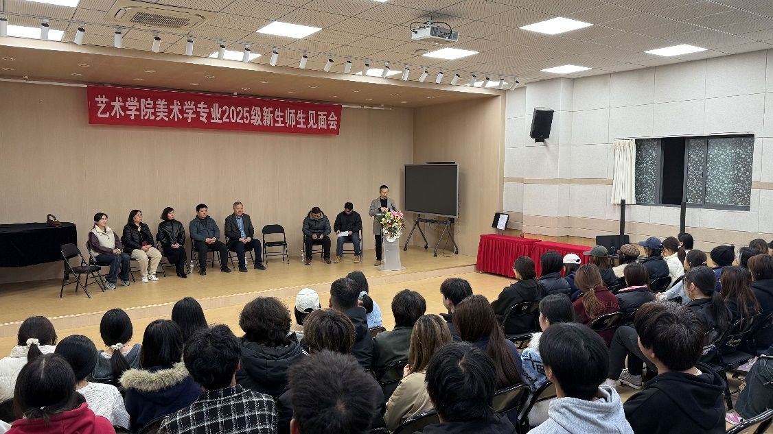11月14日晚,jdb电子中国官方网站在江北2415教室召开2025级美术学专业新生师生见面会暨班主任见面会,系主任毛德龙及美术学专业部分教师、新生班主任、全体2025级美术学专业新生共计90余人参加了本次见面会,会议由2025级美术学专业辅导员李锦龙主持。