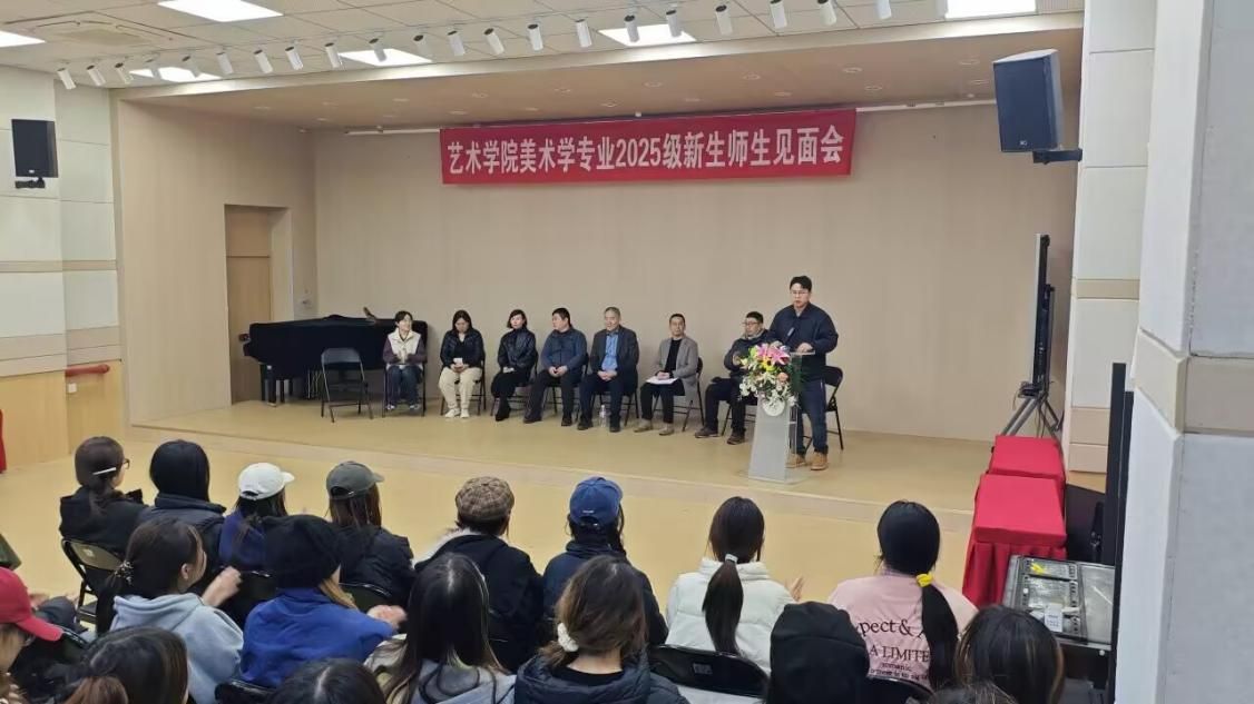 会上,毛德龙老师结合美术学专业的发展历程与学科优势,向新生们系统介绍了学院的办学理念、师资力量、教学设施及人才培养成果。