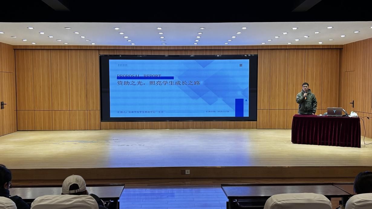 讲座中,王立围绕“资助之光,照亮学生成长之路”这一主题展开分享。他首先系统梳理了国家及学校现行的资助政策体系,从国家奖学金、国家励志奖学金、国家助学金、国家助学贷款到学校奖助学金、学费减免、临时困难补助等,逐一详解了各项资助政策的申请条件、申报流程、评审标准及发放要求。针对学生关心的助学贷款办理、奖助学金评选等热点问题,主任结合具体案例进行了细致说明,帮助学生清晰掌握政策要点。同时,他还就学生如何合理规划大学生活、提升综合素质、树立感恩意识和责任意识等方面提出了殷切期望,鼓励同学们在接受帮助的同时,积极参与志愿服务、社会实践等活动,传递爱心、回报社会。