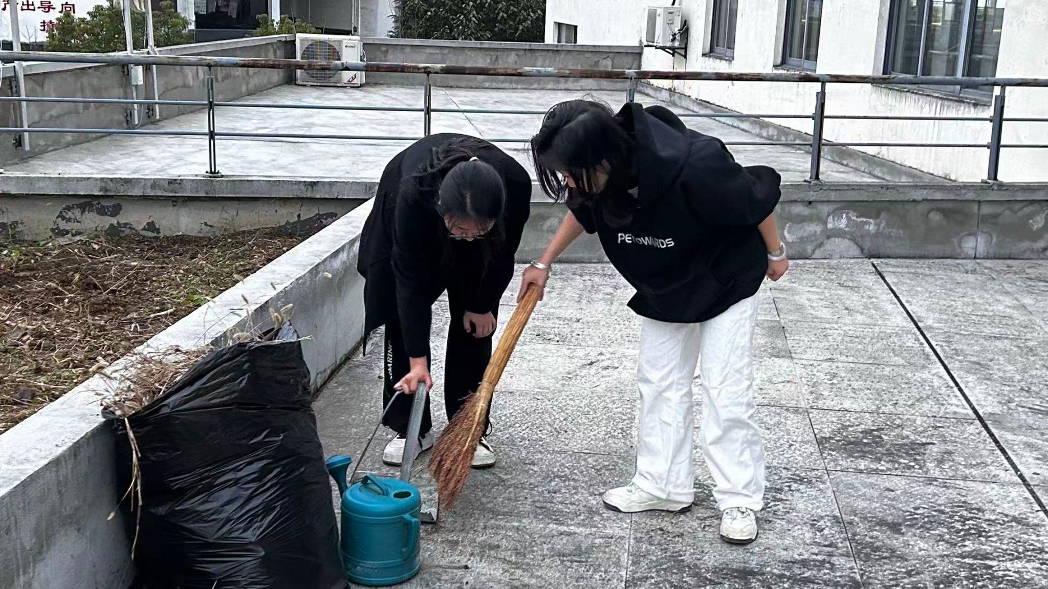 活动前期,同学们明确分工、细化任务,将走廊布置、阳台小花坛锄草清理等工作分解到各小组,确保活动有序高效推进。劳动现场一派热火朝天的景象,同学们分工协作、默契配合,不怕脏、不怕累,主动清理教学楼公共区域、整理楼梯间杂物、小花坛锄草,用双手营造整洁舒适的教学环境。通过此次活动,让同学们在亲身实践中体会“一分耕耘,一分收获”的劳动真谛,真正实现了“在劳动中学习,在实践中成长”。