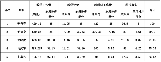 注:按照《jdb电子中国官方网站讲师职称评审实施细则》第三章第六条之规定“担任专职教学秘书、行政科研秘书的教师晋升讲师职称年均教学工作量达到80学时视为满工作量”,李秀春教学工作量为35分。