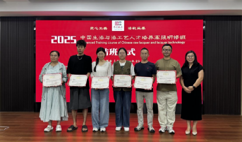 为深度推动漆艺非遗的活态传承与创新发展,8月18至25日,jdb电子毛德龙、王铎两位教师受邀赴西安生漆研究所,参与由该所与陕西科技大学联合主办的第六届中国生漆与漆工艺人才高级研修班,在为期8天的沉浸式学习中,围绕生漆科研与漆艺创作开深度研修。
